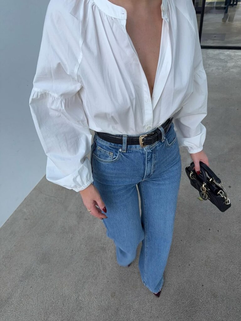 Example? Easy: a white shirt, blue jeans, and a black bag. Simple, classic, and forever stylish. It’s the kind of look that feels effortless but still gives off that clean, polished, fashion-girl energy — perfect for everyday outfits, minimal style lovers, and anyone who wants that chic, high-end vibe without overthinking it.