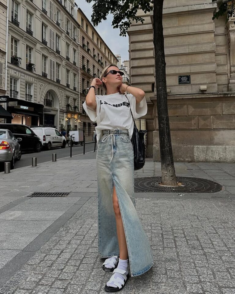 Instead, stick with bare feet and clean, neutral-toned sandals when the weather’s warm — it keeps your look fresh, airy, and effortlessly chic. And if you need a little more coverage, just switch to closed shoes like loafers or sleek sneakers. It’s simple, coordinated, and always looks way more stylish and intentional.